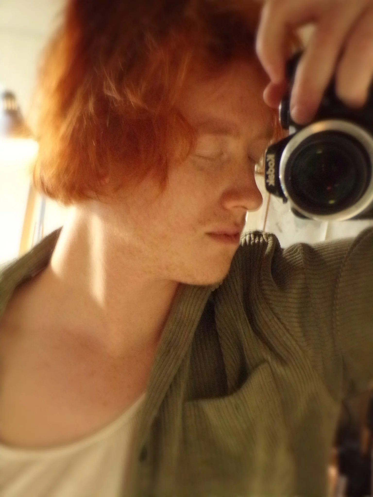 A quick self-portrait in the mirror to document what I look like today. I recently cut my own hair! It was fun and I felt so free. ‘ Shaved and trimmed one side of my head really short, and kept the other side long. I think this is the closest I’ll get to looking “edgy.”